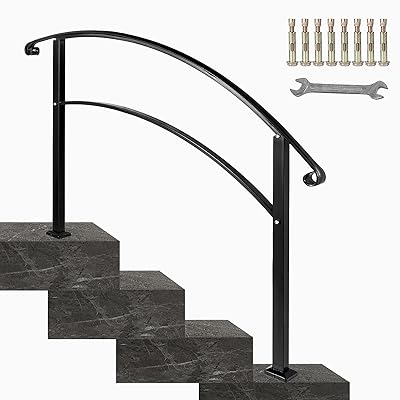 【fit 0 to 3 steps 】our handrails are easily adjustable to fit your particular step height, can be used not only on steps of 1 to 3 steps but also on a level surface, and no any modification of rail required, just adjust the middle rail to make two posts vertical to the ground.